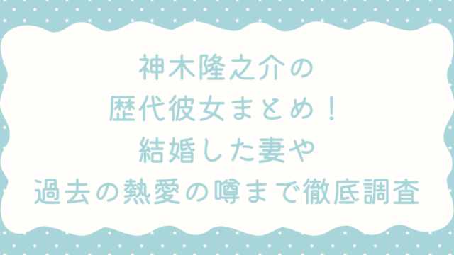 【2026最新】神木隆之介の歴代彼女まとめ!結婚した妻や過去の熱愛の噂まで徹底調査