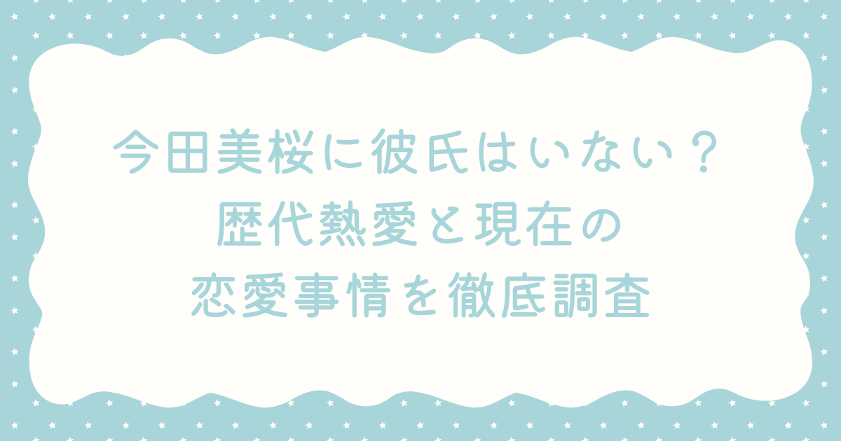結論から言うと、現時点では今田美桜さんに確定的な熱愛報道は出ていないとされています。