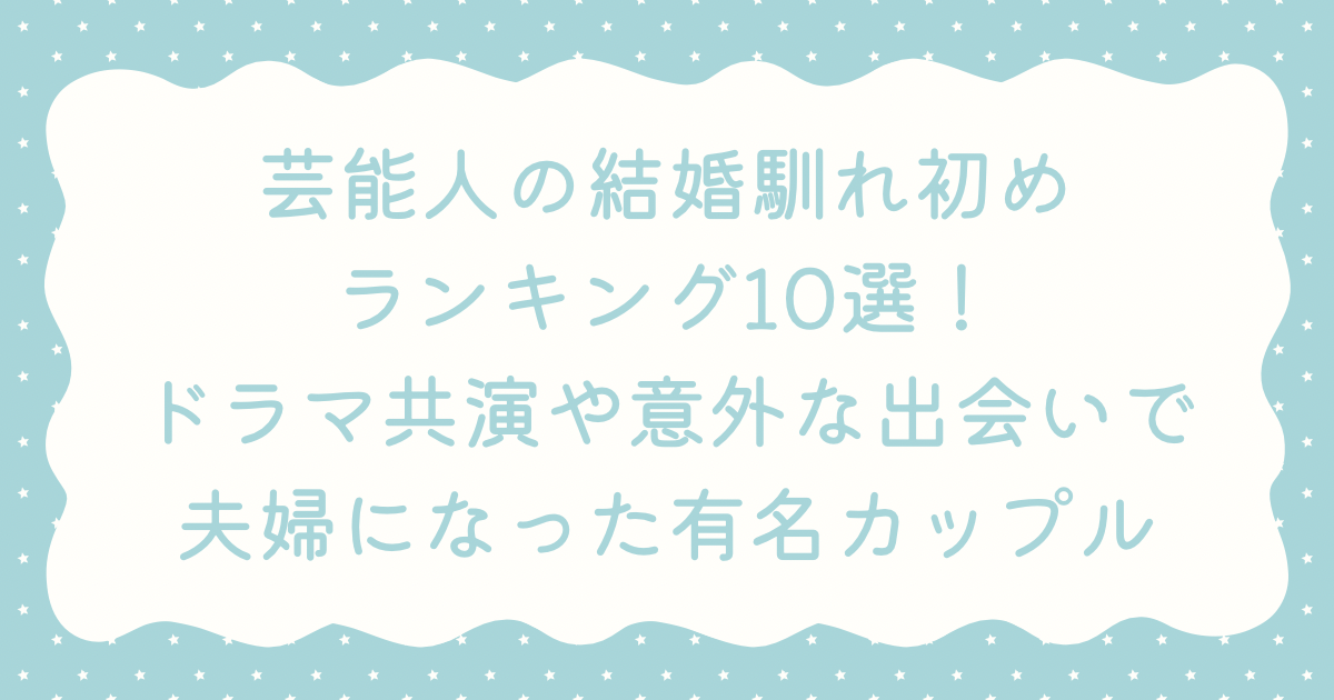 今回はそんな芸能人の結婚馴れ初めの中から、特に有名なカップルをランキング形式で紹介します。