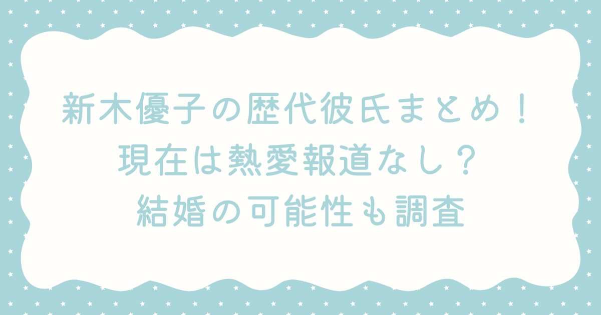 【2026最新】新木優子の歴代彼氏まとめ!現在は熱愛報道なし?結婚の可能性も調査